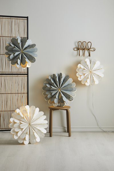 Marigold Stjärna Vit 45 cm är en elegant hängande julstjärna från den populära Marigold-serien. Med sin vackra vita skärm i papper, ger den en mjuk och modern känsla som blir en vacker kontrast till de mer traditionella julstjärnorna. Perfekt för att skapa en stilren julstämning i ditt hem. Levereras med 3,5m sladd med strömbrytare och kontakt.