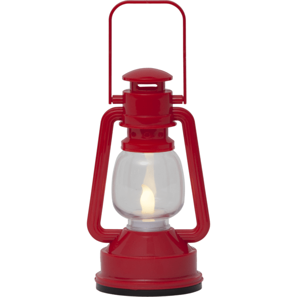 Julig röd lykta. Lyktan är 15cm hög och ger ifrån sig ett mysigt, varvmitt sken. Perfekt att ha med i lucia/tomtetåget. Drivs på 1st CR2032 batteri som ingår. Brinntid ca: 80h.