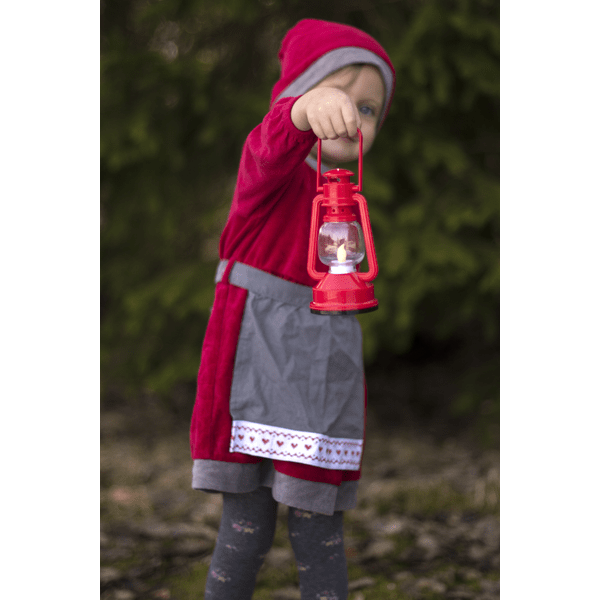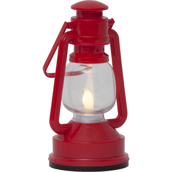 Julig röd lykta. Lyktan är 15cm hög och ger ifrån sig ett mysigt, varvmitt sken. Perfekt att ha med i lucia/tomtetåget. Drivs på 1st CR2032 batteri som ingår. Brinntid ca: 80h.