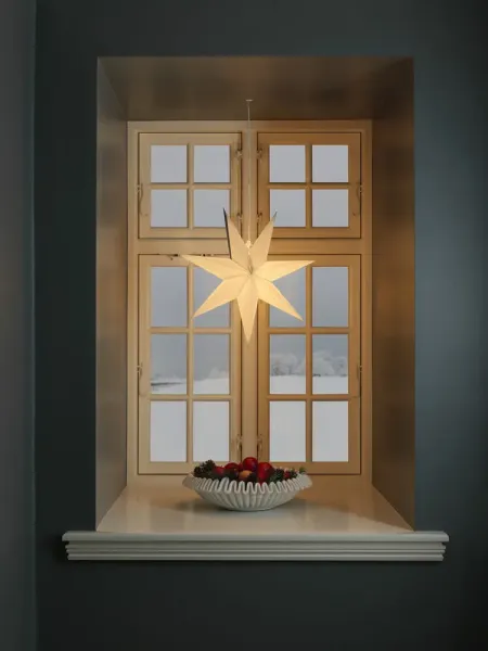 Pappersstjärna Ø60 Vit från Konstsmide - Perfekt att hänga i fönstret eller mot en vacker vägg – en tidlös dekoration som förgyller varje rum med enkel elegans.